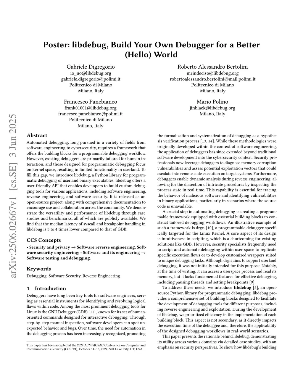 Poster: libdebug, Build Your Own Debugger for a Better (Hello) World