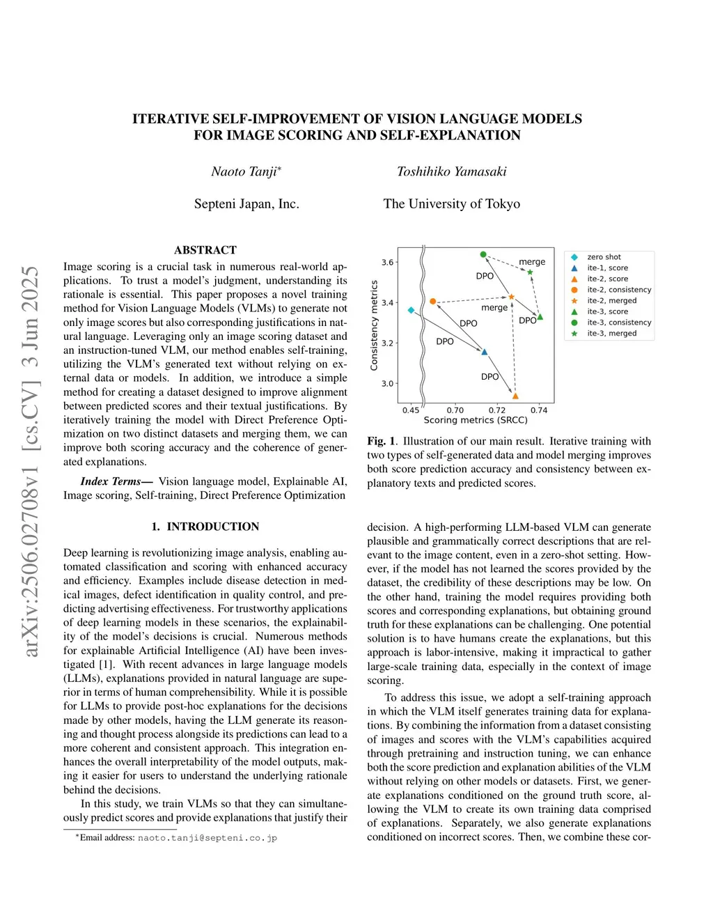 Iterative Self-Improvement of Vision Language Models for Image Scoring and Self-Explanation