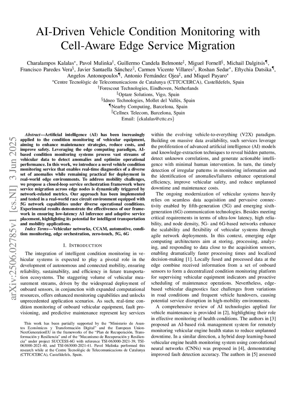 AI-Driven Vehicle Condition Monitoring with Cell-Aware Edge Service Migration