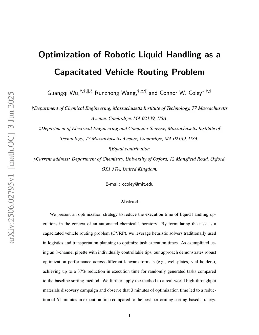 Optimization of Robotic Liquid Handling as a Capacitated Vehicle Routing Problem