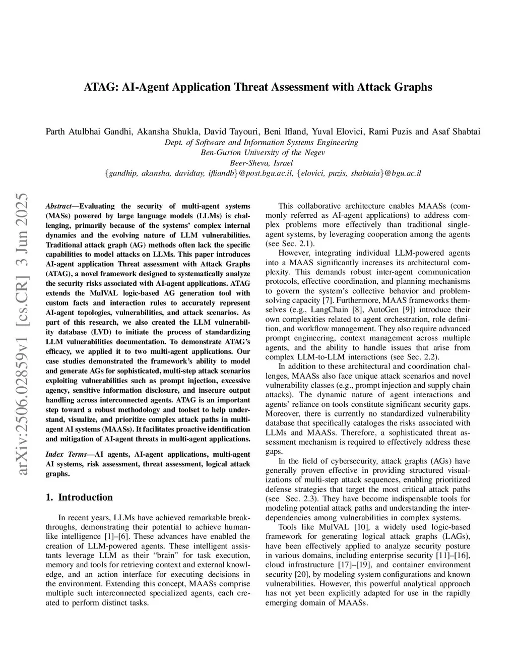 ATAG: AI-Agent Application Threat Assessment with Attack Graphs