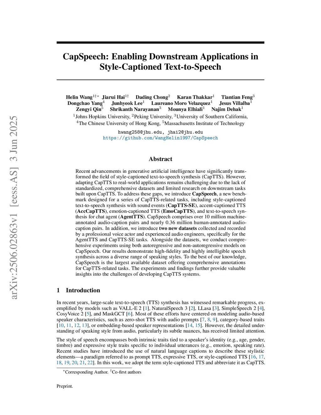 CapSpeech: Enabling Downstream Applications in Style-Captioned Text-to-Speech
