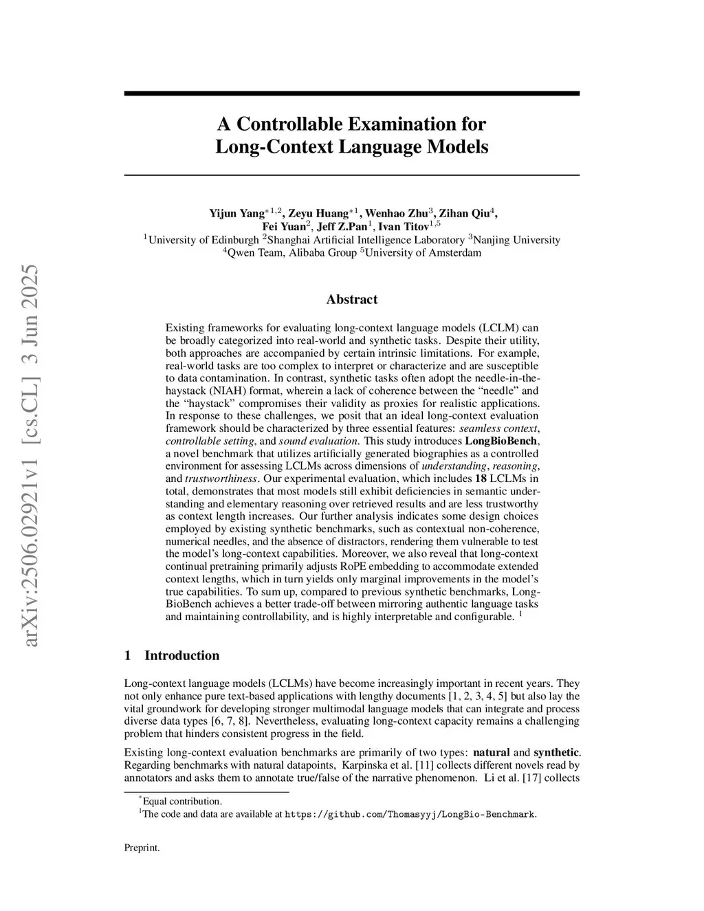 Existing frameworks for evaluating long-context language models (LCLM) can be broadly categorized into real-world applications (e.g, document summarization) and synthetic tasks (e.g, needle-in-a-haystack). Despite their utility, both approaches are accompanied by certain intrinsic limitations. Real-world tasks often involve complexity that makes interpretation challenging and suffer from data contamination, whereas synthetic tasks frequently lack meaningful coherence between the target information (needle) and its surrounding context (haystack), undermining their validity as proxies for realistic applications. In response to these challenges, we posit that an ideal long-context evaluation framework should be characterized by three essential features: 1) seamless context 2) controllable setting and 3) sound evaluation. This study introduces , a benchmark that utilizes artificially generated biographies as a controlled environment for assessing LCLMs across dimensions of understanding, reasoning, and trustworthiness. Our experimental evaluation, which includes 18 LCLMs in total, demonstrates that most models still exhibit deficiencies in semantic understanding and elementary reasoning over retrieved results and are less trustworthy as context length increases. Our further analysis indicates some design choices employed by existing synthetic benchmarks, such as contextual non-coherence, numerical needles, and the absence of distractors, rendering them vulnerable to test the model's long-context capabilities. To sum up, compared to previous synthetic benchmarks, LongBioBench achieves a better trade-off between mirroring authentic language tasks and maintaining controllability, and is highly interpretable and configurable.