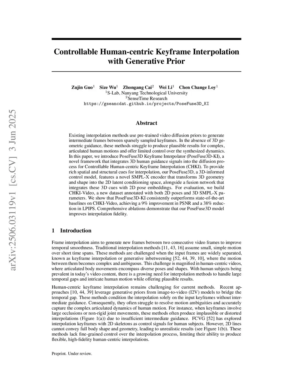 Controllable Human-centric Keyframe Interpolation with Generative Prior