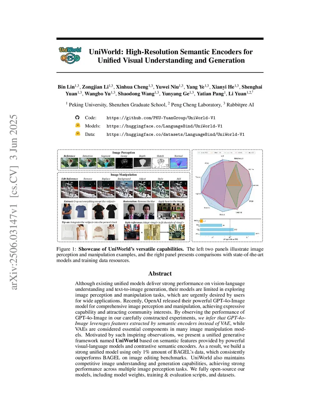 UniWorld-V1: High-Resolution Semantic Encoders for Unified Visual Understanding and Generation