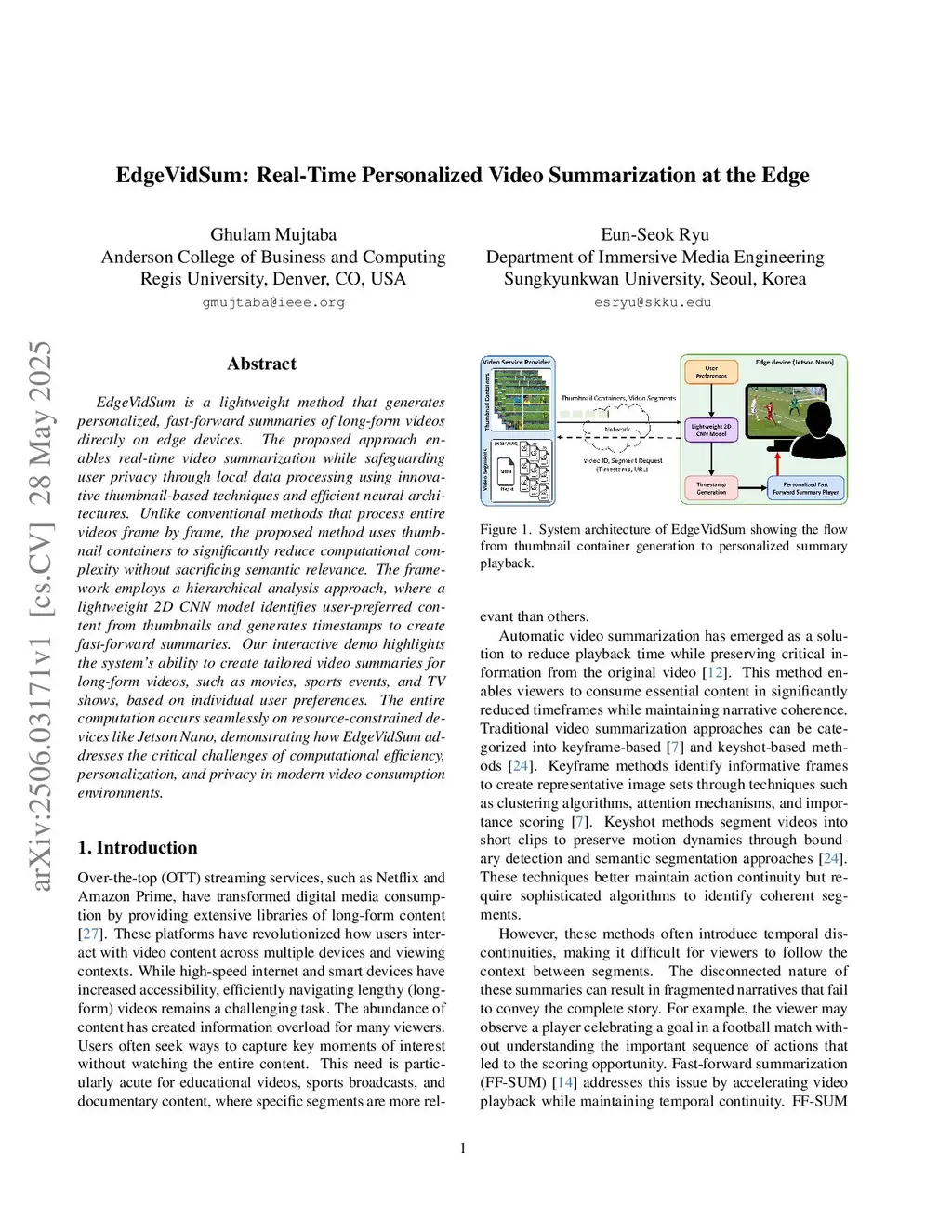 EdgeVidSum: Real-Time Personalized Video Summarization at the Edge