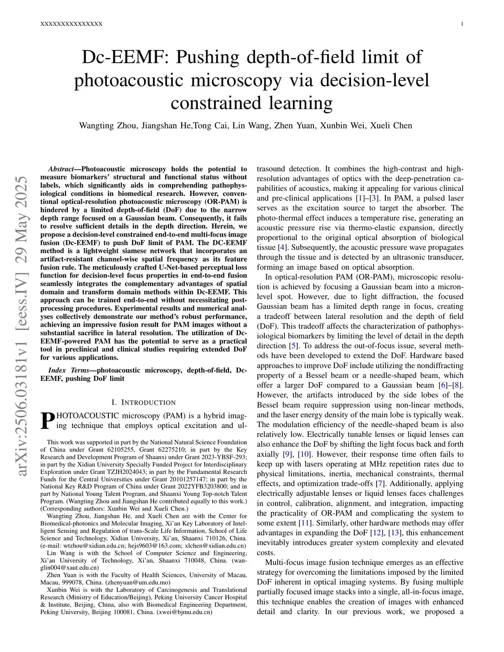 Dc-EEMF: Pushing depth-of-field limit of photoacoustic microscopy via decision-level constrained learning