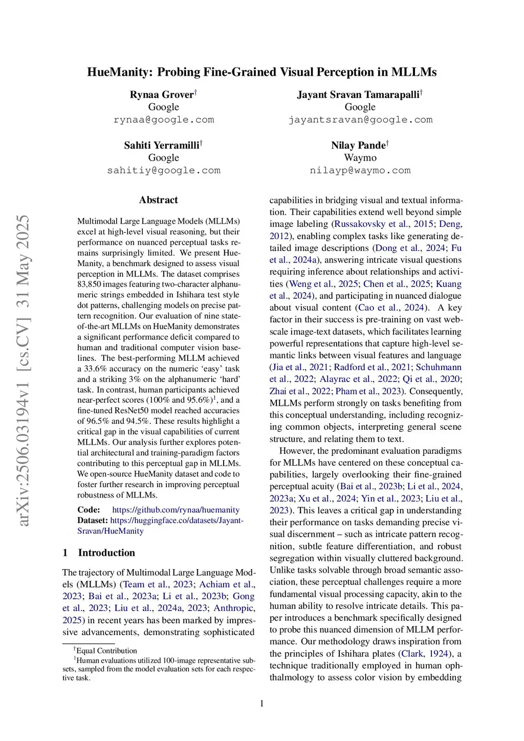 HueManity: Probing Fine-Grained Visual Perception in MLLMs