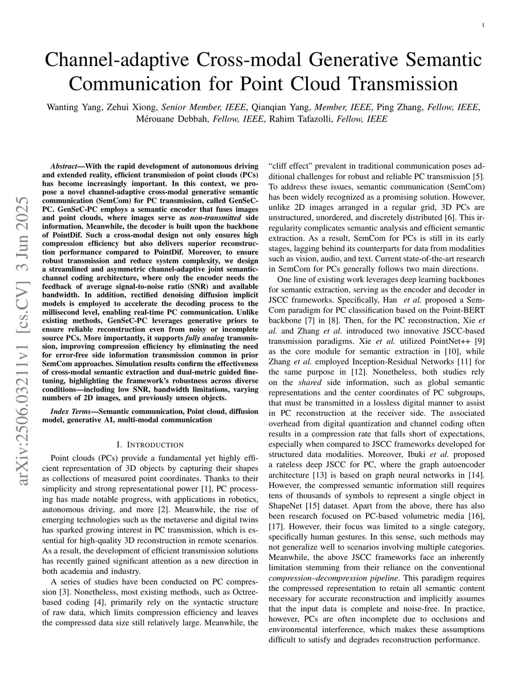 Channel-adaptive Cross-modal Generative Semantic Communication for Point Cloud Transmission