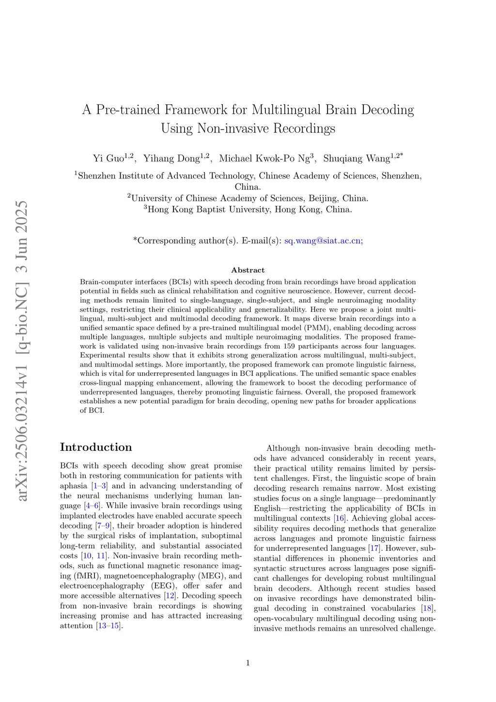 A Pre-trained Framework for Multilingual Brain Decoding Using Non-invasive Recordings