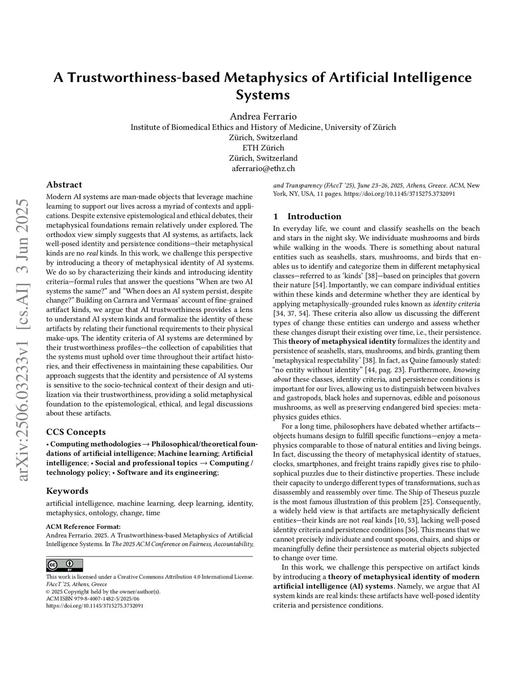 A Trustworthiness-based Metaphysics of Artificial Intelligence Systems