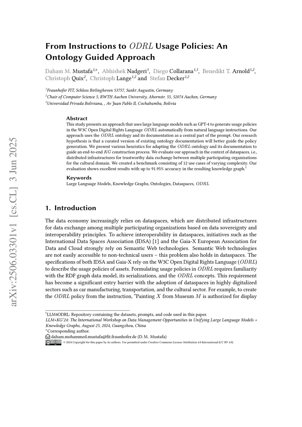 From Instructions to ODRL Usage Policies: An Ontology Guided Approach