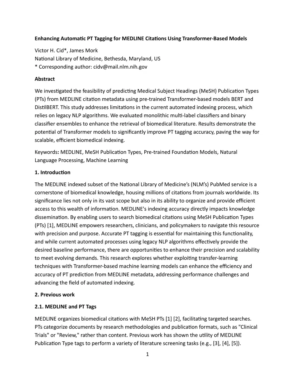 We investigated the feasibility of predicting Medical Subject Headings (MeSH) Publication Types (PTs) from MEDLINE citation metadata using pre-trained Transformer-based models BERT and DistilBERT. This study addresses limitations in the current automated indexing process, which relies on legacy NLP algorithms. We evaluated monolithic multi-label classifiers and binary classifier ensembles to enhance the retrieval of biomedical literature. Results demonstrate the potential of Transformer models to significantly improve PT tagging accuracy, paving the way for scalable, efficient biomedical indexing.