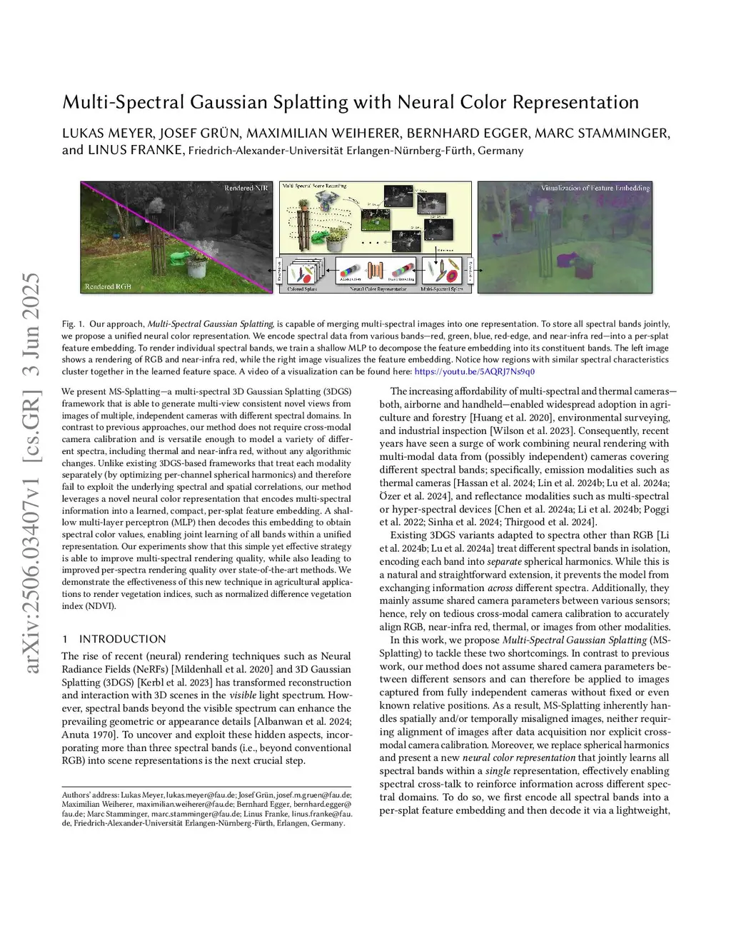 Multi-Spectral Gaussian Splatting with Neural Color Representation