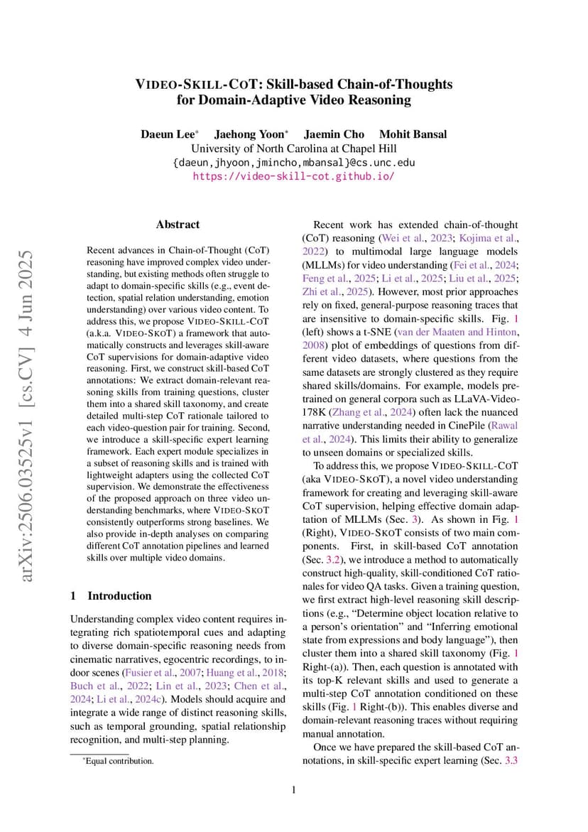Video-Skill-CoT: Skill-based Chain-of-Thoughts for Domain-Adaptive Video Reasoning