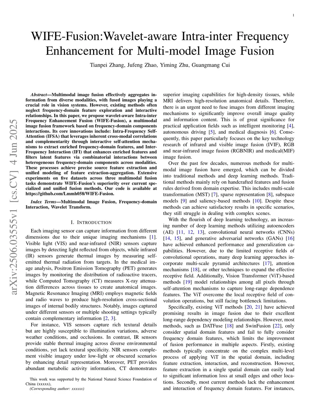 WIFE-Fusion:Wavelet-aware Intra-inter Frequency Enhancement for Multi-model Image Fusion