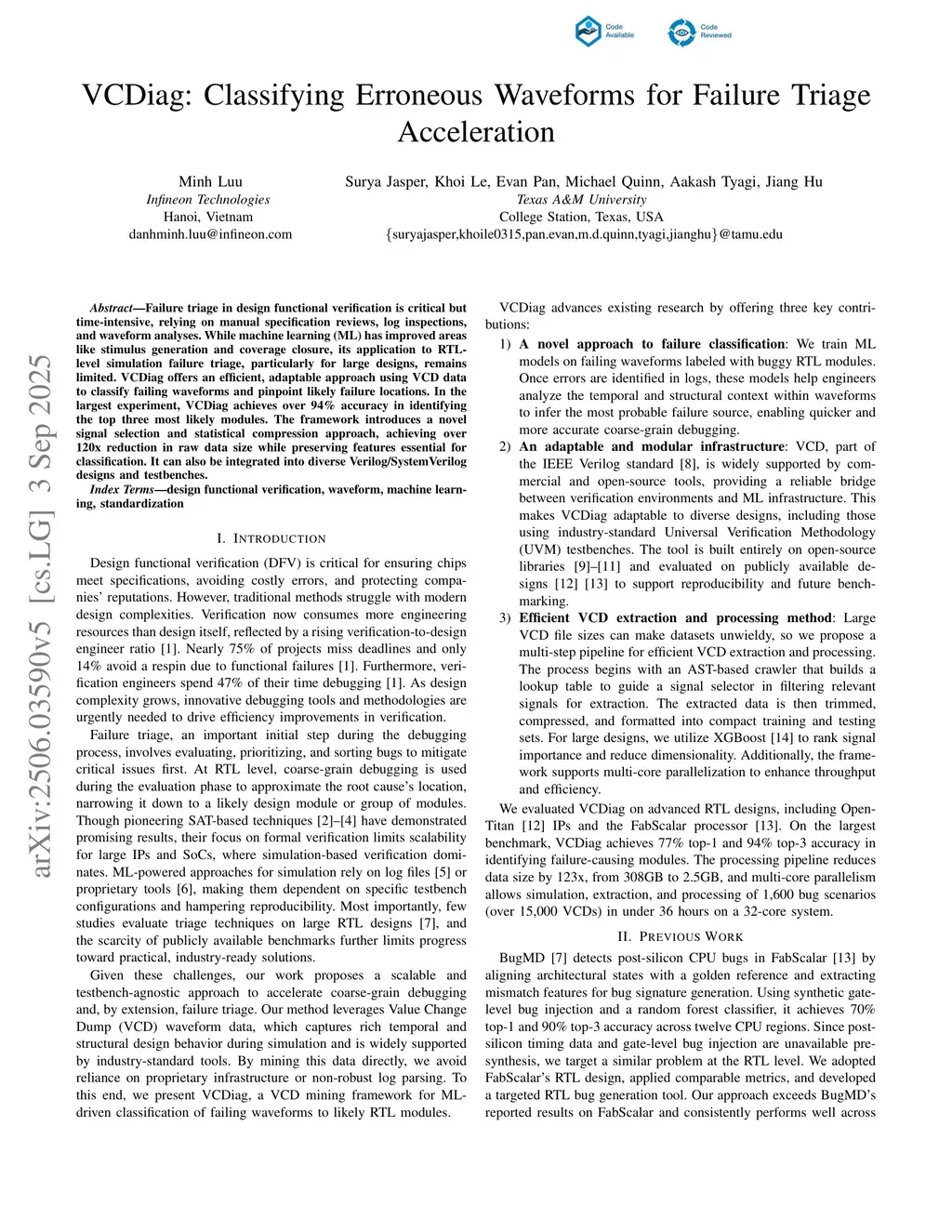 VCDiag: Classifying Erroneous Waveforms for Failure Triage Acceleration