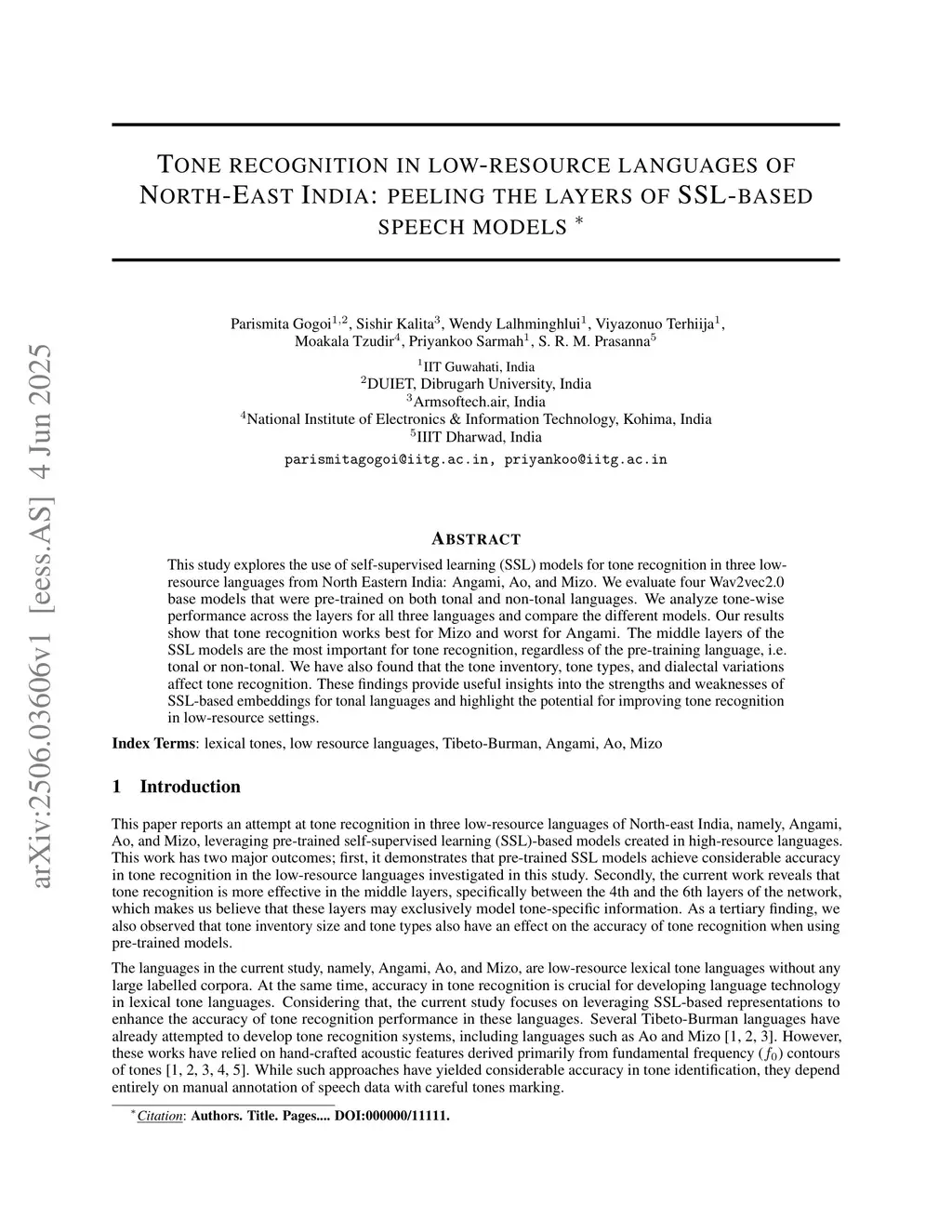 Tone recognition in low-resource languages of North-East India: peeling the layers of SSL-based speech models
