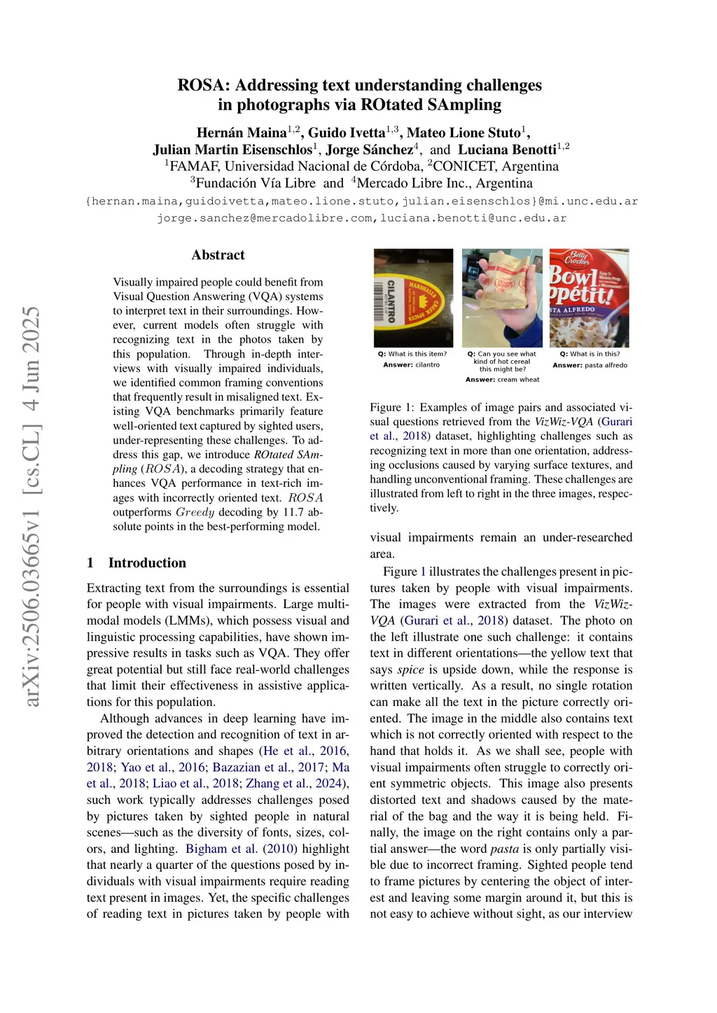 Visually impaired people could benefit from Visual Question Answering (VQA) systems to interpret text in their surroundings. However, current models often struggle with recognizing text in the photos taken by this population. Through in-depth interviews with visually impaired individuals, we identified common framing conventions that frequently result in misaligned text. Existing VQA benchmarks primarily feature well-oriented text captured by sighted users, under-representing these challenges. To address this gap, we introduce ROtated SAmpling (ROSA), a decoding strategy that enhances VQA performance in text-rich images with incorrectly oriented text. ROSA outperforms Greedy decoding by 11.7 absolute points in the best-performing model.