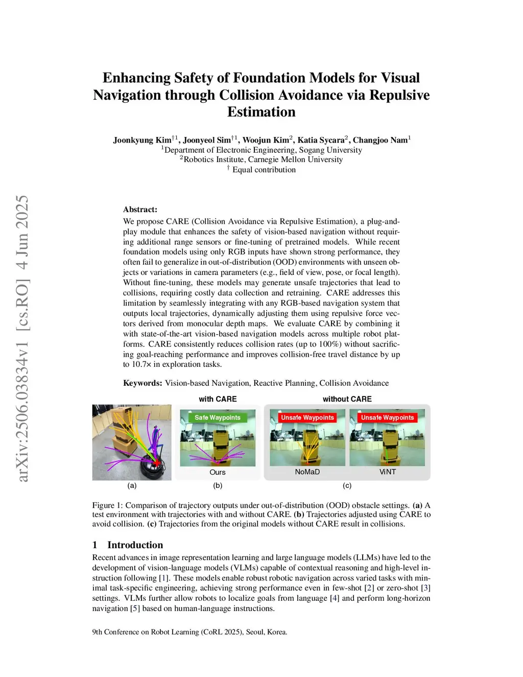 CARE: Enhancing Safety of Visual Navigation through Collision Avoidance via Repulsive Estimation