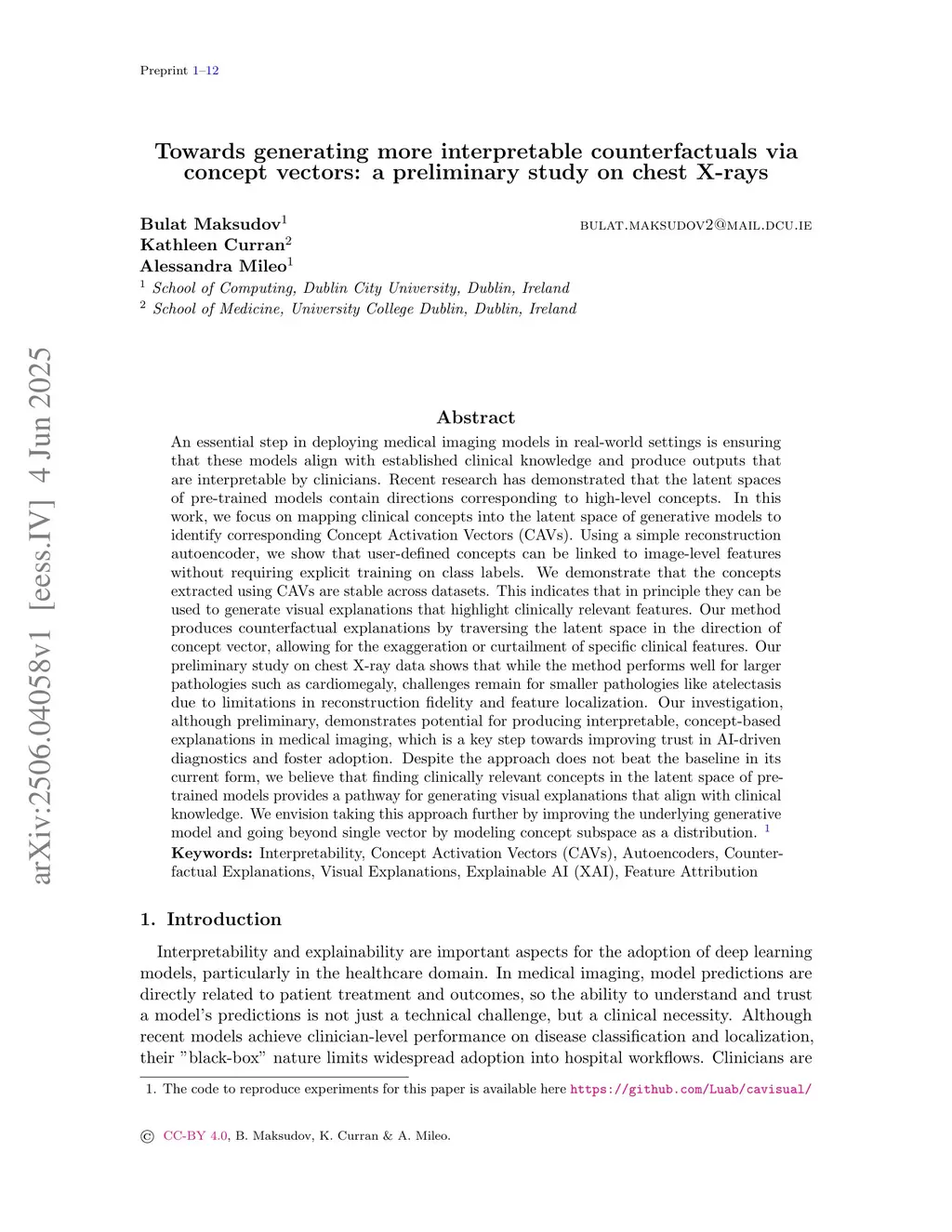 Towards generating more interpretable counterfactuals via concept vectors: a preliminary study on chest X-rays