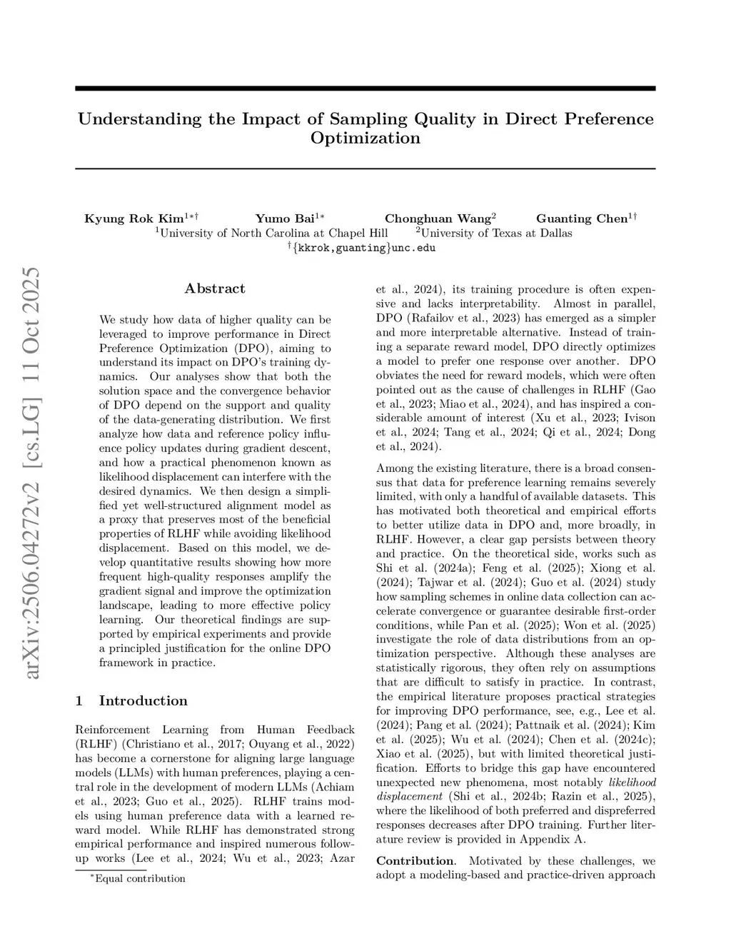 We study how data of higher quality can be leveraged to improve performance in Direct Preference Optimization (DPO), aiming to understand its impact on DPO training dynamics. Our analyses show that both the solution space and the convergence behavior of DPO depend on the support and quality of the data-generating distribution. We first analyze how data and reference policy influence policy updates during gradient descent, and how a practical phenomenon known as likelihood displacement can interfere with the desired dynamics. We then design a simplified yet well-structured alignment model as a proxy that preserves most of the beneficial properties of RLHF while avoiding likelihood displacement. Based on this model, we develop quantitative results showing how more frequent high-quality responses amplify the gradient signal and improve the optimization landscape, leading to more effective policy learning. Our theoretical findings are supported by empirical experiments and provide a principled justification for the online DPO framework in practice.