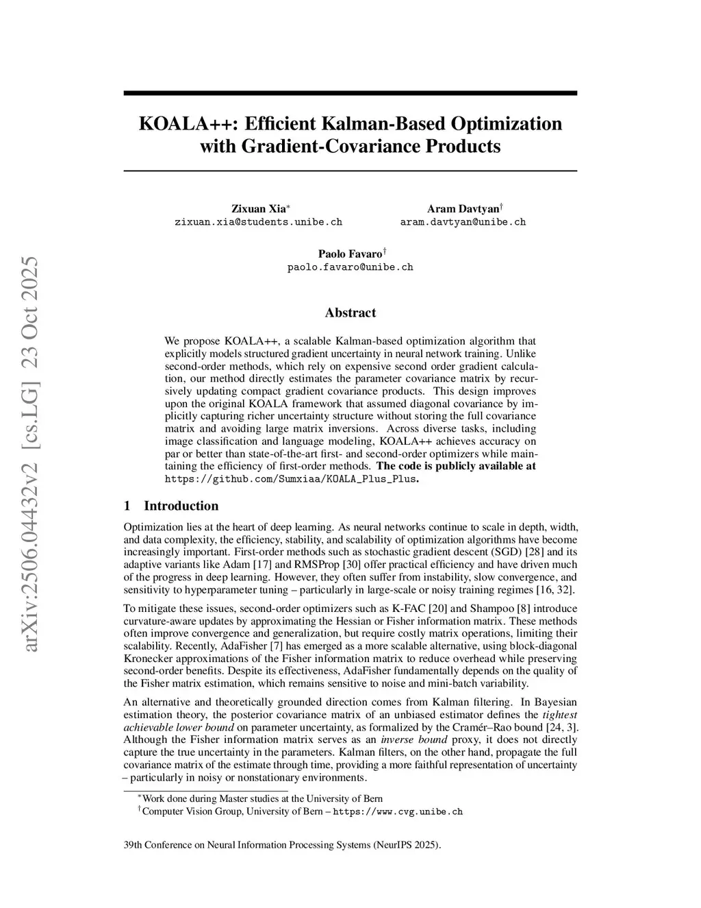 We propose KOALA++, a scalable Kalman-based optimization algorithm that explicitly models structured gradient uncertainty in neural network training. Unlike second-order methods, which rely on expensive second order gradient calculation, our method directly estimates the parameter covariance matrix by recursively updating compact gradient covariance products. This design improves upon the original KOALA framework that assumed diagonal covariance by implicitly capturing richer uncertainty structure without storing the full covariance matrix and avoiding large matrix inversions. Across diverse tasks, including image classification and language modeling, KOALA++ achieves accuracy on par or better than state-of-the-art first- and second-order optimizers while maintaining the efficiency of first-order methods.
