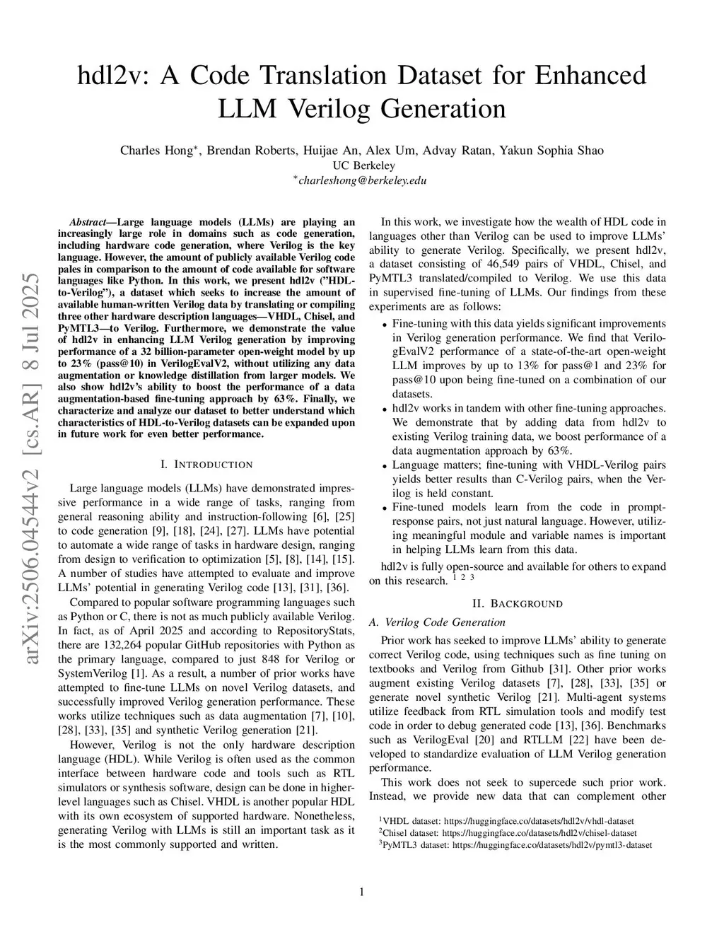 hdl2v: A Code Translation Dataset for Enhanced LLM Verilog Generation