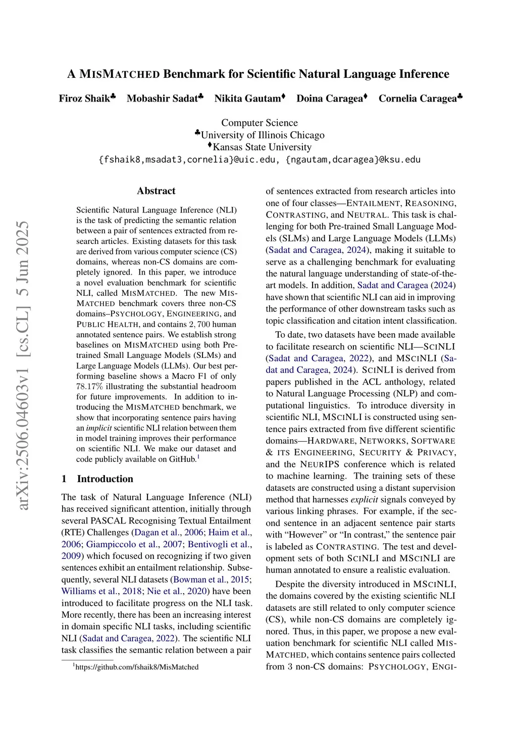A MISMATCHED Benchmark for Scientific Natural Language Inference