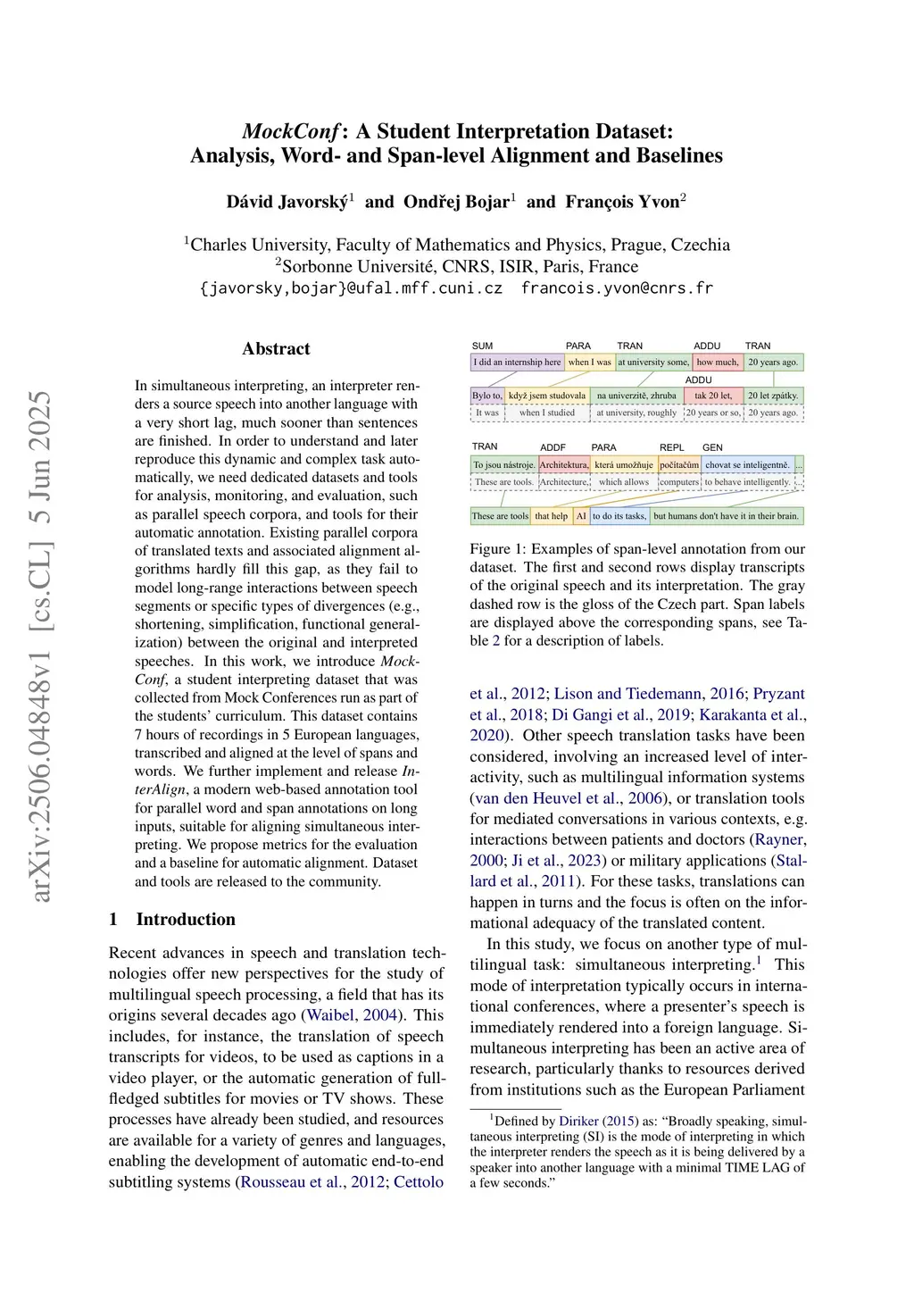 MockConf: A Student Interpretation Dataset: Analysis, Word- and Span-level Alignment and Baselines