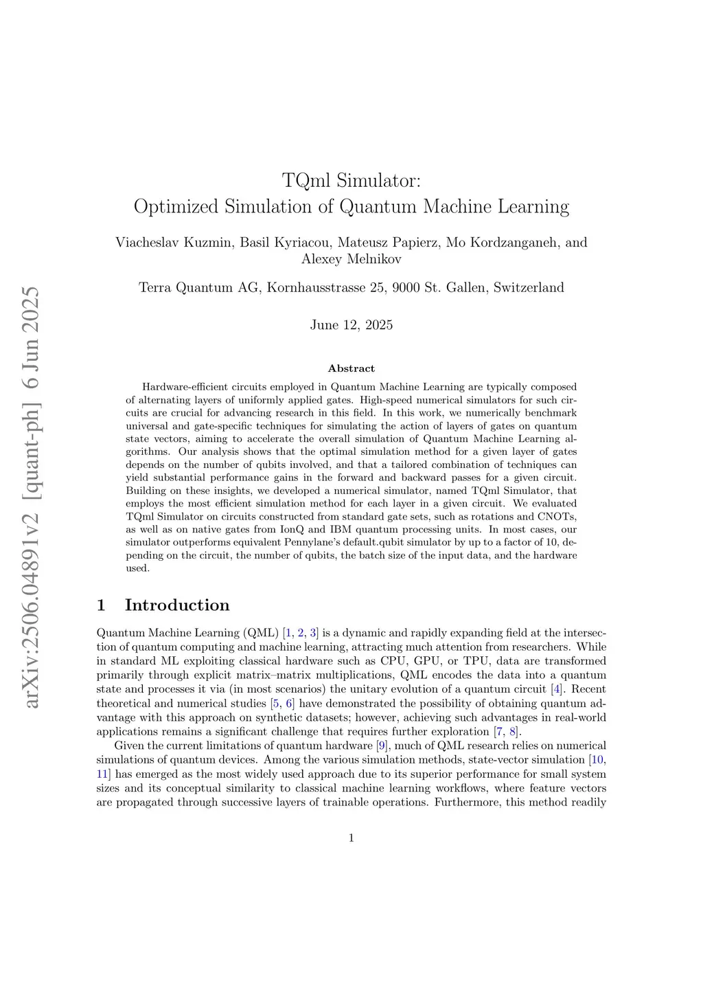 Hardware-efficient circuits employed in Quantum Machine Learning are typically composed of alternating layers of uniformly applied gates. High-speed numerical simulators for such circuits are crucial for advancing research in this field. In this work, we numerically benchmark universal and gate-specific techniques for simulating the action of layers of gates on quantum state vectors, aiming to accelerate the overall simulation of Quantum Machine Learning algorithms. Our analysis shows that the optimal simulation method for a given layer of gates depends on the number of qubits involved, and that a tailored combination of techniques can yield substantial performance gains in the forward and backward passes for a given circuit. Building on these insights, we developed a numerical simulator, named TQml Simulator, that employs the most efficient simulation method for each layer in a given circuit. We evaluated TQml Simulator on circuits constructed from standard gate sets, such as rotations and CNOTs, as well as on native gates from IonQ and IBM quantum processing units. In most cases, our simulator outperforms equivalent Pennylane'sthis http URLsimulator by up to a factor of 10, depending on the circuit, the number of qubits, the batch size of the input data, and the hardware used.
