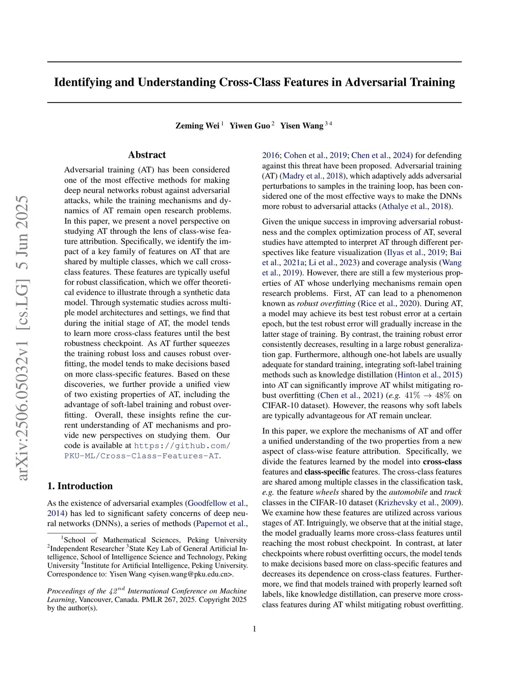 Identifying and Understanding Cross-Class Features in Adversarial Training