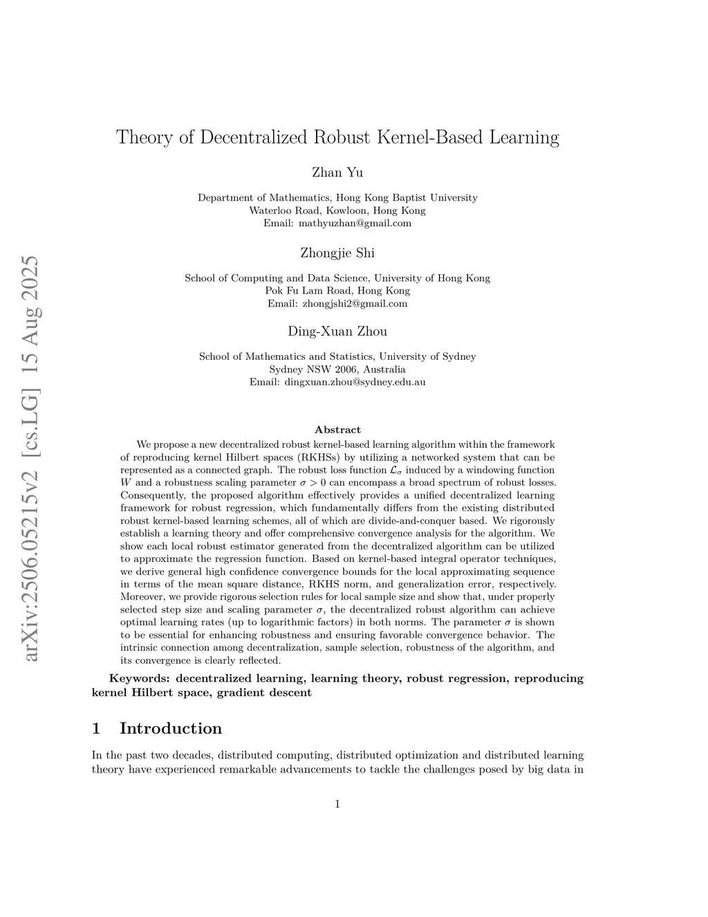 Theory of Decentralized Robust Kernel-Based Learning