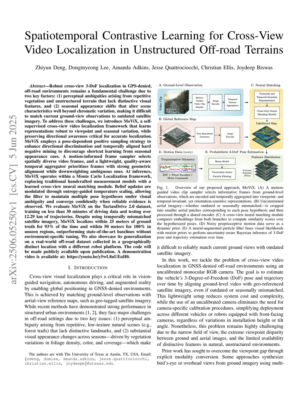 Spatiotemporal Contrastive Learning for Cross-View Video Localization in Unstructured Off-road Terrains