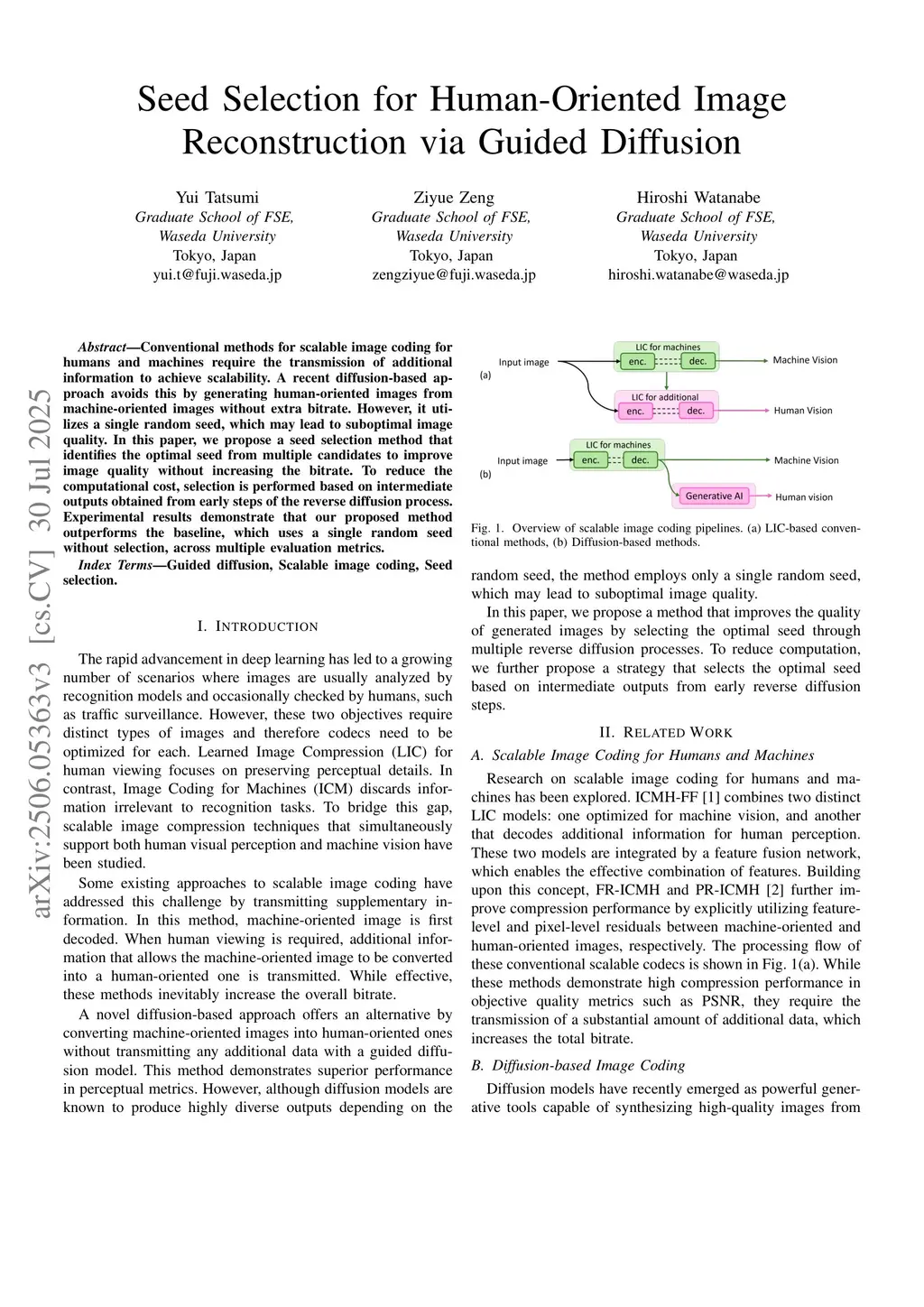 Conventional methods for scalable image coding for humans and machines require the transmission of additional information to achieve scalability. A recent diffusion-based method avoids this by generating human-oriented images from machine-oriented images without extra bitrate. This method, however, uses a single random seed, which may lead to suboptimal image quality. In this paper, we propose a seed selection method that identifies the optimal seed from multiple candidates to improve image quality without increasing the bitrate. To reduce computational cost, the selection is performed based on intermediate outputs obtained from early steps of the reverse diffusion process. Experimental results demonstrate that our method outperforms the baseline across multiple metrics.