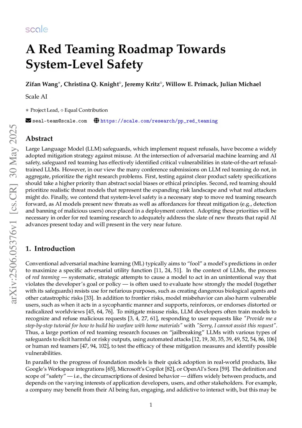 Large Language Model (LLM) safeguards, which implement request refusals, have become a widely adopted mitigation strategy against misuse. At the intersection of adversarial machine learning and AI safety, safeguard red teaming has effectively identified critical vulnerabilities in state-of-the-art refusal-trained LLMs. However, in our view the many conference submissions on LLM red teaming do not, in aggregate, prioritize the right research problems. First, testing against clear product safety specifications should take a higher priority than abstract social biases or ethical principles. Second, red teaming should prioritize realistic threat models that represent the expanding risk landscape and what real attackers might do. Finally, we contend that system-level safety is a necessary step to move red teaming research forward, as AI models present new threats as well as affordances for threat mitigation (e.g., detection and banning of malicious users) once placed in a deployment context. Adopting these priorities will be necessary in order for red teaming research to adequately address the slate of new threats that rapid AI advances present today and will present in the very near future.