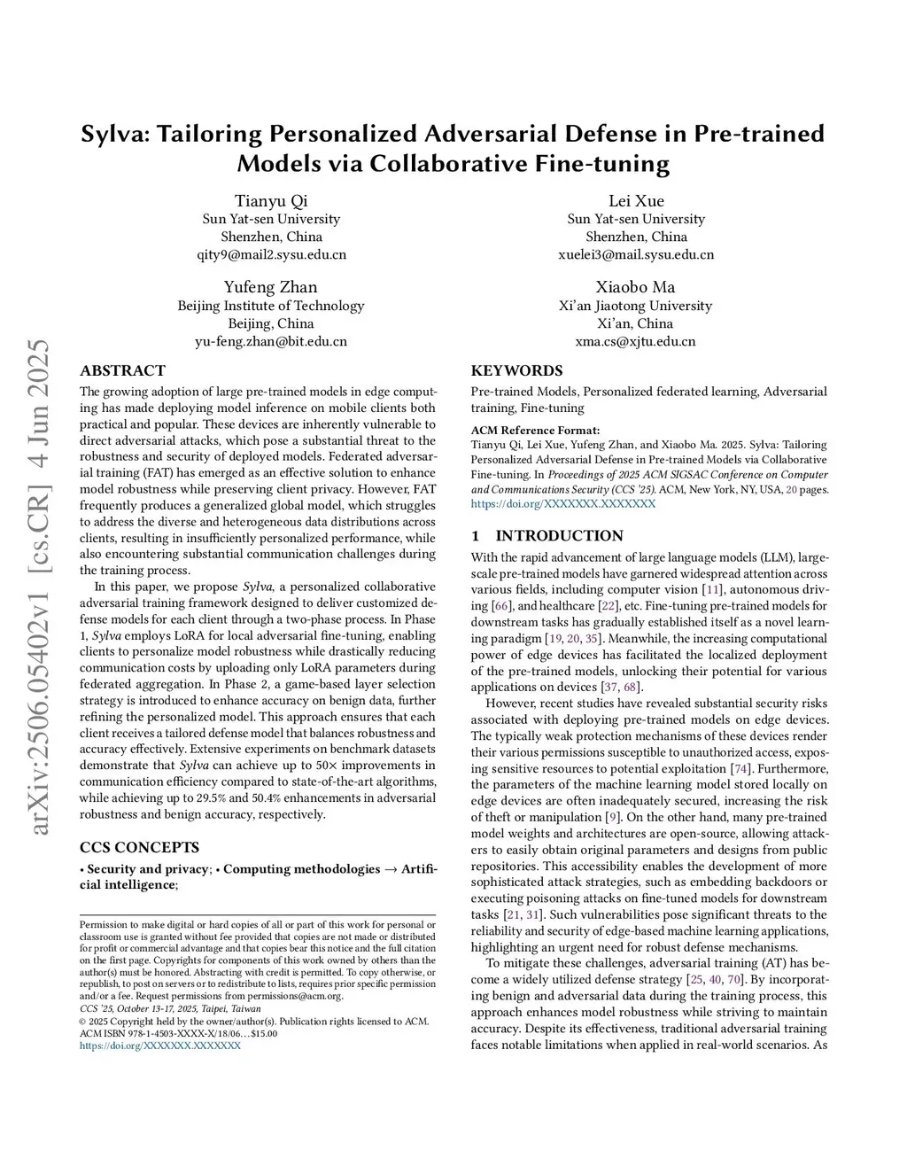 The growing use of large pre-trained models in edge computing has made model inference on mobile clients both feasible and popular. Yet these devices remain vulnerable to adversarial attacks, threatening model robustness and security. Federated adversarial training (FAT) offers a promising solution by enhancing robustness while preserving client privacy. However, FAT often yields a generalized global model that struggles with heterogeneous client data, leading to limited personalization and significant communication overhead. In this paper, we propose \textit{Lorica}, a personalized synergistic adversarial training framework that delivers customized defense models through a two-phase process. In Phase 1, \textit{Lorica} applies LoRA-FA for local adversarial fine-tuning, enabling personalized robustness while reducing communication by uploading only LoRA-FA parameters. In Phase 2, a forward-gating selection strategy improves benign accuracy, further refining the personalized model. This yields tailored defense models that effectively balance robustness and accuracy. Extensive experiments on benchmark datasets demonstrate that \textit{Lorica} can achieve up to 68 improvements in communication efficiency compared to state-of-the-art algorithms, while achieving up to 29.9\% and 52.2\% enhancements in adversarial robustness and benign accuracy, respectively.