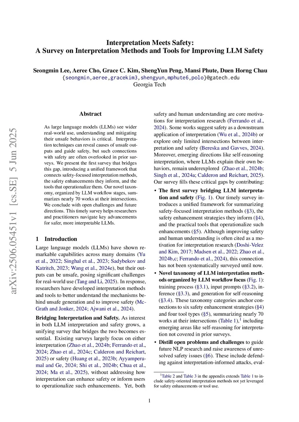 As large language models (LLMs) see wider real-world use, understanding and mitigating their unsafe behaviors is critical. Interpretation techniques can reveal causes of unsafe outputs and guide safety, but such connections with safety are often overlooked in prior surveys. We present the first survey that bridges this gap, introducing a unified framework that connects safety-focused interpretation methods, the safety enhancements they inform, and the tools that operationalize them. Our novel taxonomy, organized by LLM workflow stages, summarizes nearly 70 works at their intersections. We conclude with open challenges and future directions. This timely survey helps researchers and practitioners navigate key advancements for safer, more interpretable LLMs.