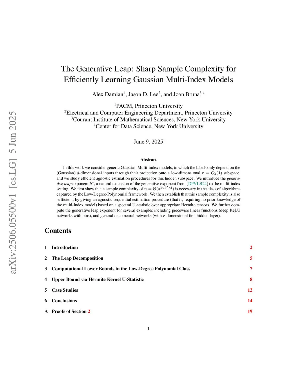 In this work we consider generic Gaussian Multi-index models, in which the labels only depend on the (Gaussian) -dimensional inputs through their projection onto a low-dimensional subspace, and we study efficient agnostic estimation procedures for this hidden subspace. We introduce the \emph{generative leap} exponent , a natural extension of the generative exponent from [Damian et al.'24] to the multi-index setting. We first show that a sample complexity of is necessary in the class of algorithms captured by the Low-Degree-Polynomial framework. We then establish that this sample complexity is also sufficient, by giving an agnostic sequential estimation procedure (that is, requiring no prior knowledge of the multi-index model) based on a spectral U-statistic over appropriate Hermite tensors. We further compute the generative leap exponent for several examples including piecewise linear functions (deep ReLU networks with bias), and general deep neural networks (with -dimensional first hidden layer).