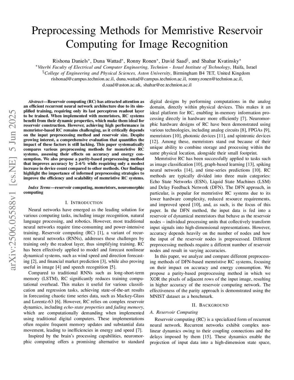 Preprocessing Methods for Memristive Reservoir Computing for Image Recognition