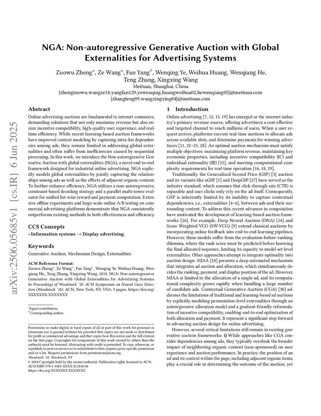 NGA: Non-autoregressive Generative Auction with Global Externalities for Advertising Systems