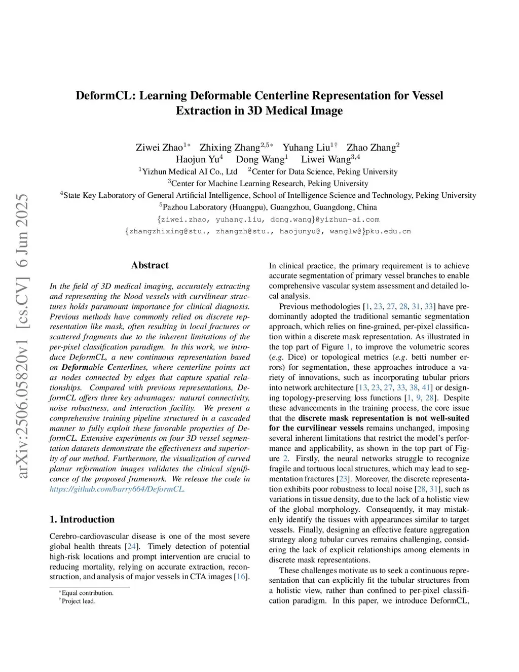 DeformCL: Learning Deformable Centerline Representation for Vessel Extraction in 3D Medical Image