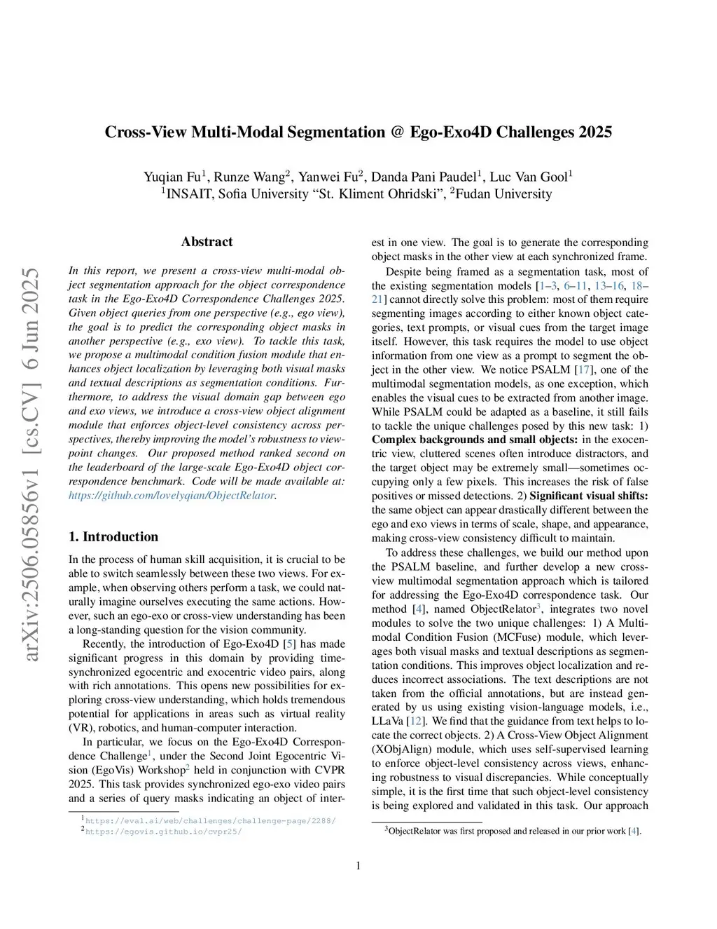 Cross-View Multi-Modal Segmentation @ Ego-Exo4D Challenges 2025