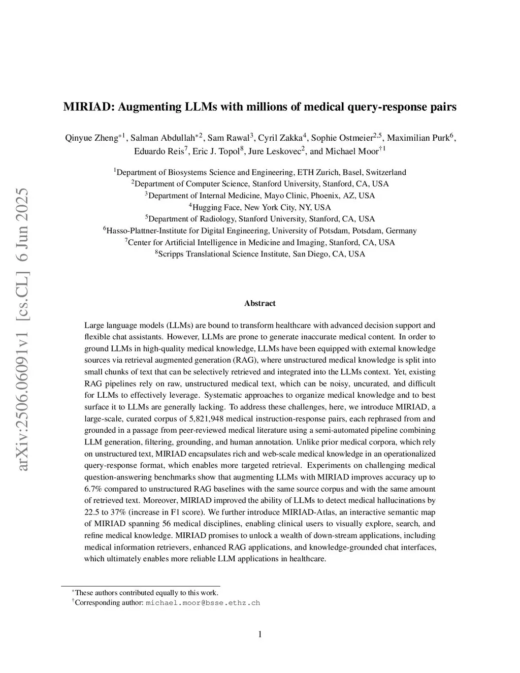 MIRIAD: Augmenting LLMs with millions of medical query-response pairs