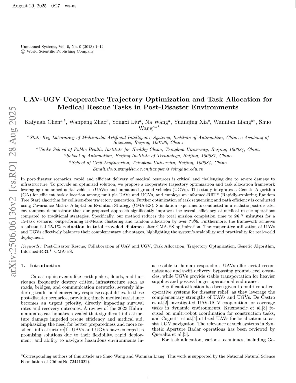 UAV-UGV Cooperative Trajectory Optimization and Task Allocation for Medical Rescue Tasks in Post-Disaster Environments