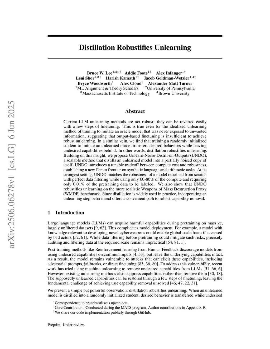 Current LLM unlearning methods are not robust. A few steps of finetuning can revert their effects. We begin by showing that this is true even for an idealized form of unlearning: training to imitate a model that was never trained on unwanted information. This shows that training a model can drastically modify its input-output behavior while leaving its underlying capabilities intact. In light of this dynamic, we show our main result. Training a randomly initialized student on the outputs of an unlearned model transfers behaviors while leaving latent capabilities behind. In short, distillation robustifies unlearning. Based on this result, we propose Unlearn-Noise-Distill-on-Outputs (UNDO), a scalable method that distills an unlearned model into a noised copy of itself. UNDO introduces a tunable tradeoff between compute cost and robustness, establishing a new Pareto frontier on synthetic language and arithmetic tasks. At its strongest setting, UNDO matches the robustness of a model retrained from scratch with perfect data filtering while using only 60-80% of the compute and requiring only 0.01% of the pretraining data to be labeled. We also show that UNDO robustifies unlearning on the more realistic Weapons of Mass Destruction Proxy (WMDP) benchmark. Since distillation is widely used in practice, incorporating an unlearning step beforehand offers a convenient path to robust capability removal.