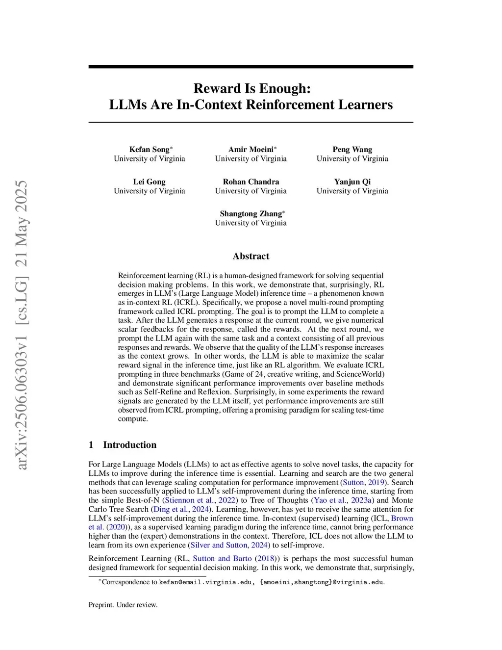 Reward Is Enough: LLMs Are In-Context Reinforcement Learners