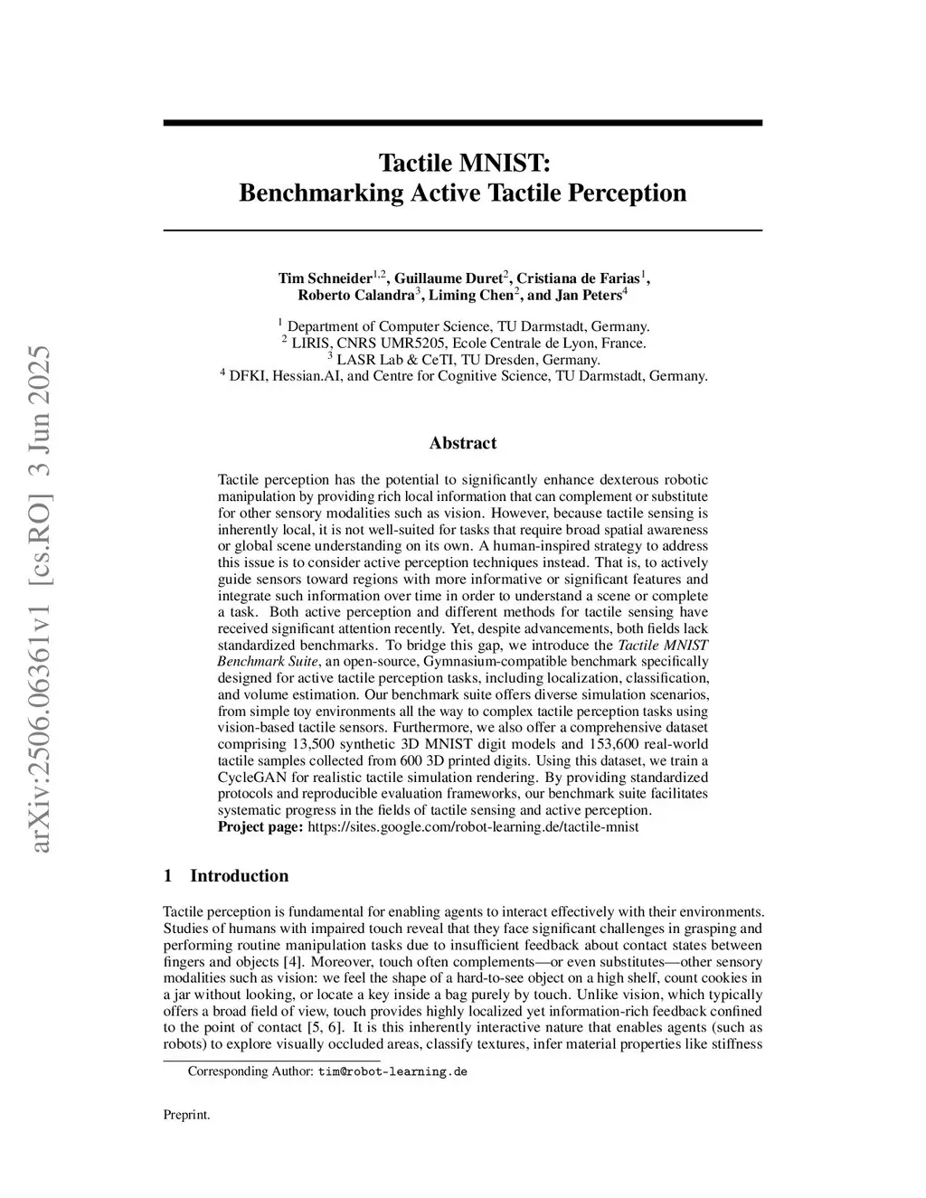 Tactile MNIST: Benchmarking Active Tactile Perception
