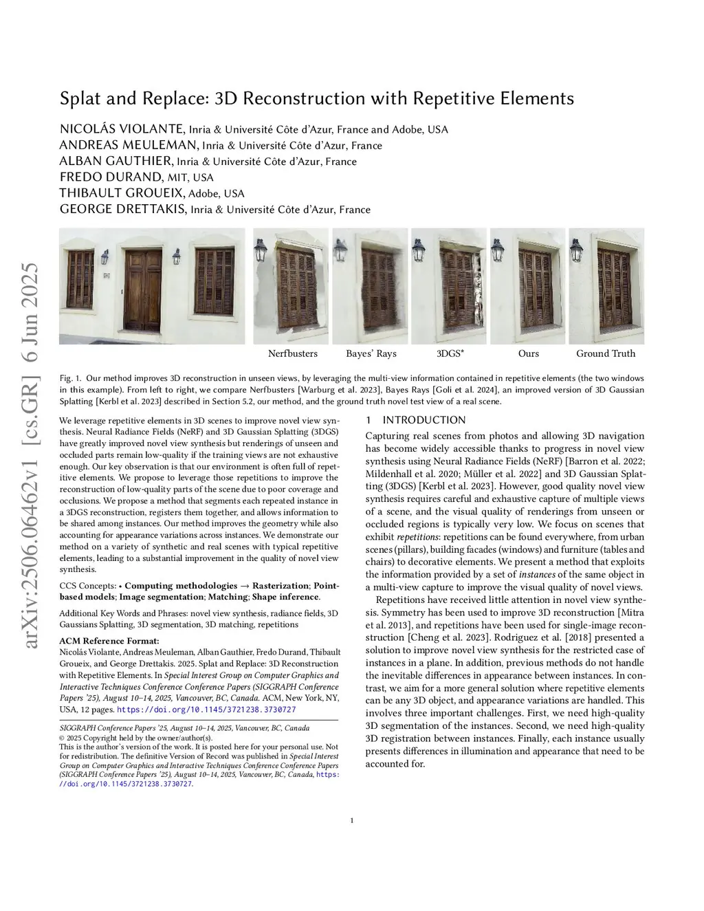 Splat and Replace: 3D Reconstruction with Repetitive Elements