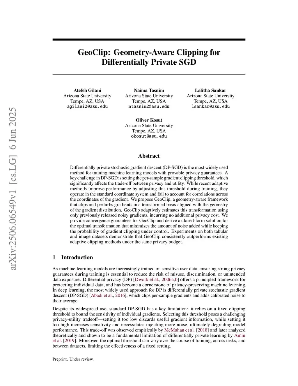 GeoClip: Geometry-Aware Clipping for Differentially Private SGD
